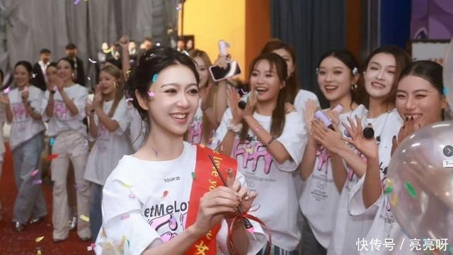 还有一张照片是她和团队的工作人员一起拍摄的,可以看出这么多人中第一眼还是最先看到薛凯琪,她的胳膊纤细,洁白的皮肤就像白雪公主一样,